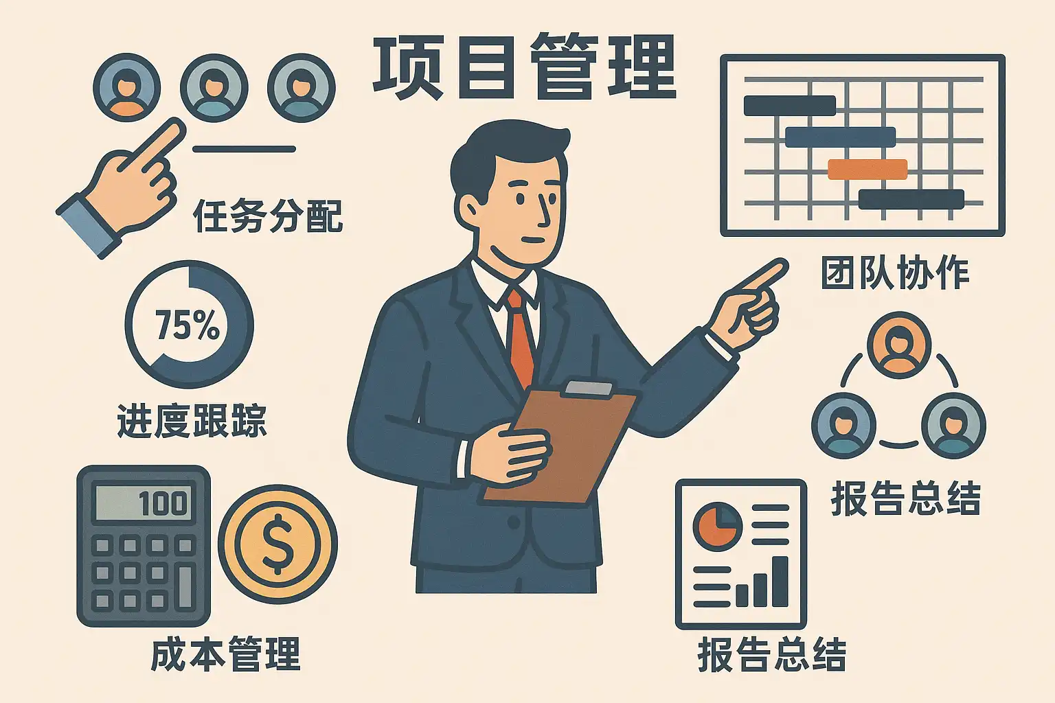 项目管理的核心职责主要包括计划制定、资源协调、进度控制、风险管理和质量保障。具体内容如下: