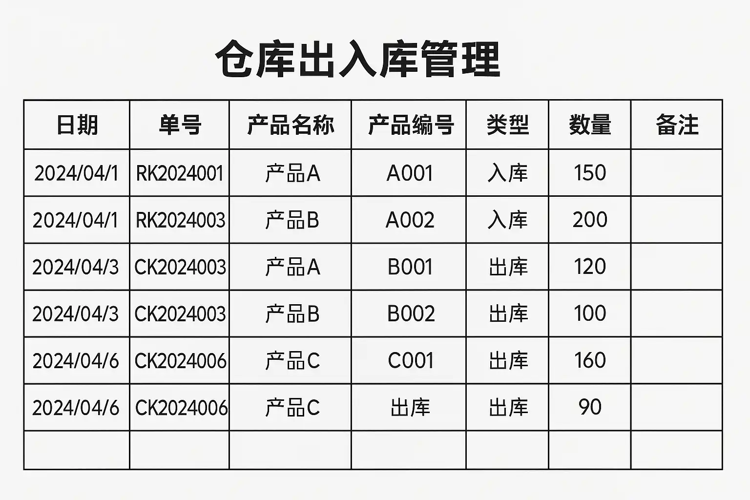 仓库出入库管理表格中应该包含哪些关键字段?