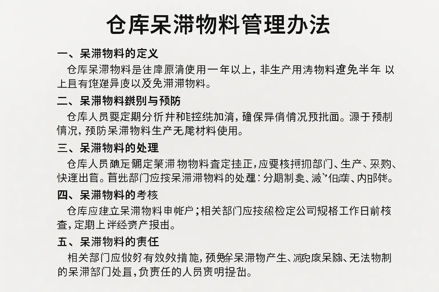 仓库呆滞物料管理办法主要包括以下几个方面:
