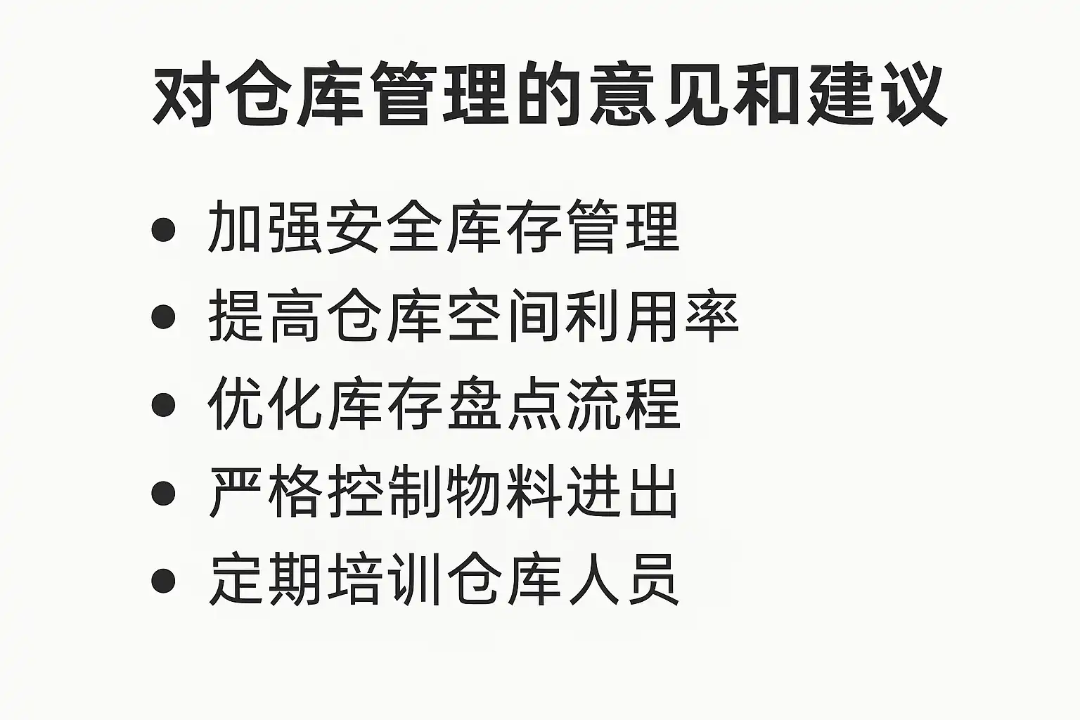 - 制定明确的操作规范,如收货、上架、拣货、包装、发货流程。