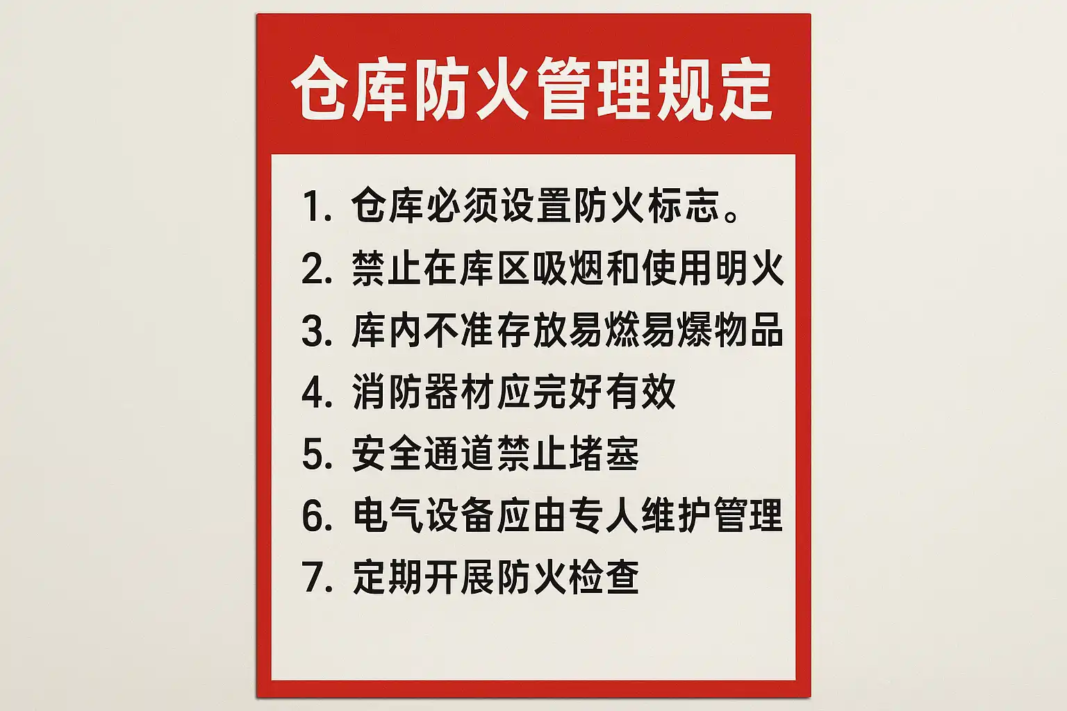 仓库防火管理规定需结合国家法律法规和企业实际情况,形成系统化的管理文件,并严格执行。