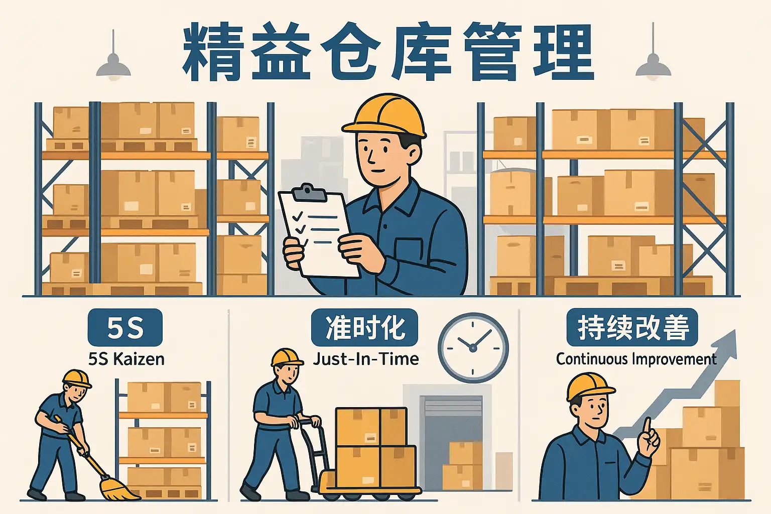 精益仓库管理通过优化库存流程、减少浪费和提升作业效率,实现降本增效。关键措施包括:
