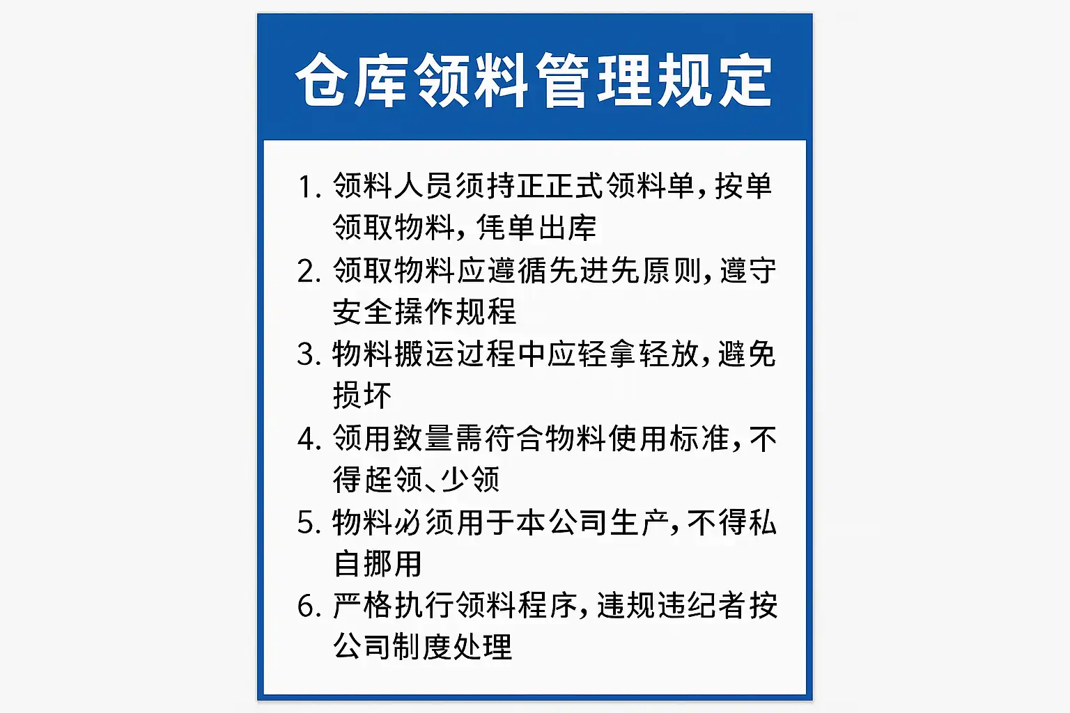 | 单据填写与流转 | 使用标准化领料单、电子单据,所有环节签字或电子确认 |
