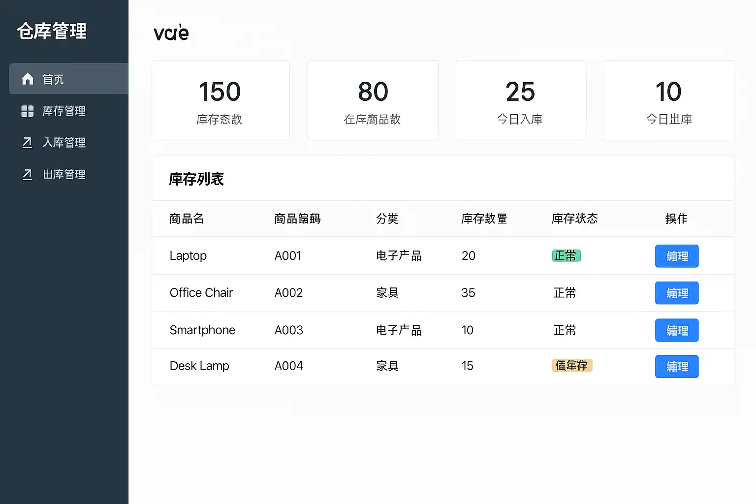 - 组件化开发:模块化设计仓库管理界面,方便维护和扩展。