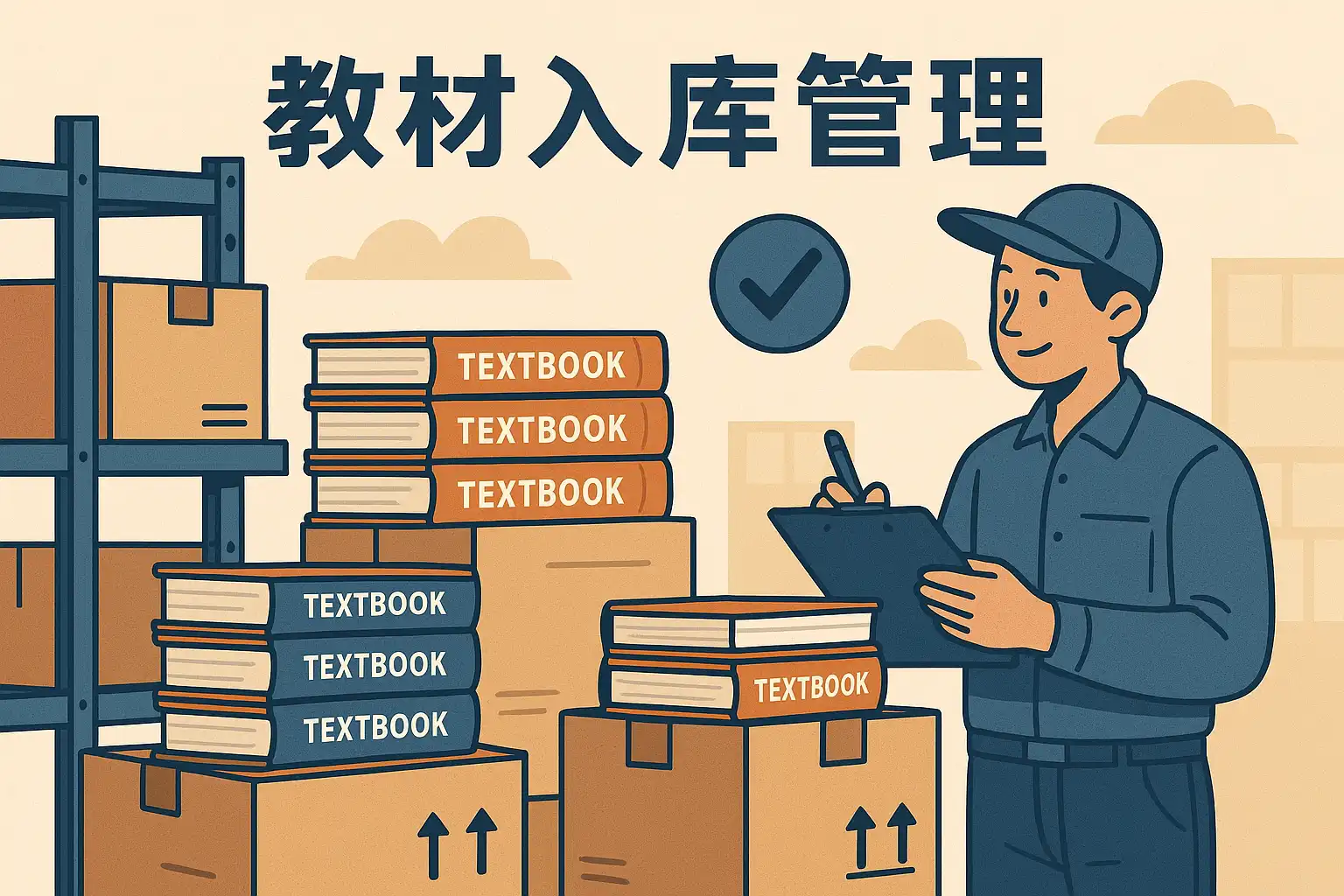| 收货验收 | 检查教材品种、数量、外观 | 使用收货清单、扫码器 |