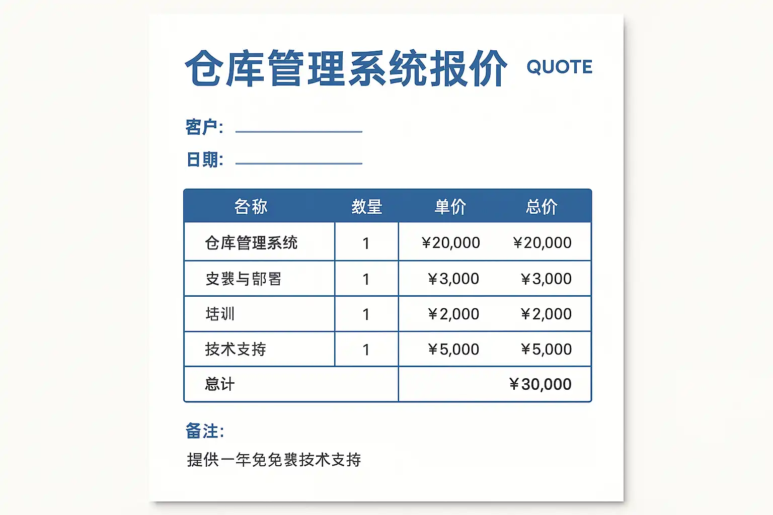 - 软件授权费:通常占总报价的50%-70%,根据用户数和功能模块定价。