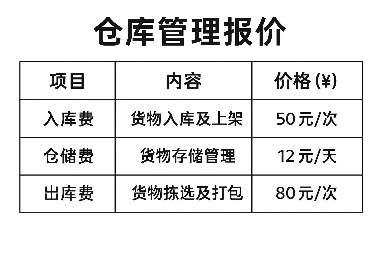 | 明细化报价 | 清晰、易沟通、可追溯 | 多环节、多服务项目、复杂仓储项目 |