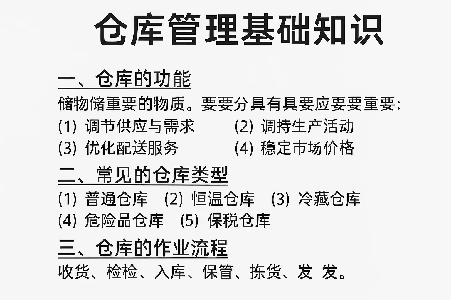 仓库管理基础知识txt文件通常涵盖以下核心内容: