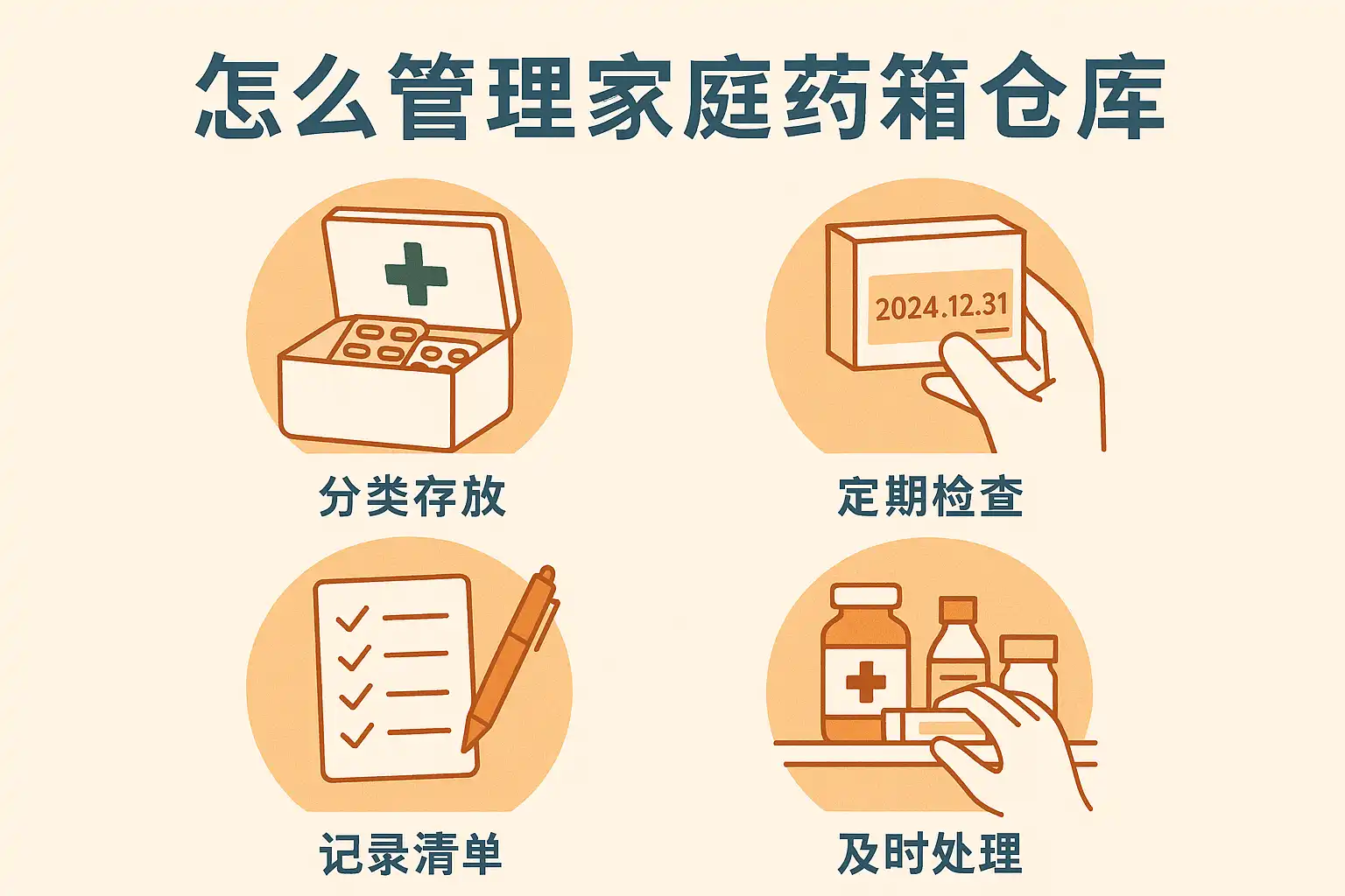 - 分类整理后,建议采用透明药箱或分隔盒,便于日常检查。