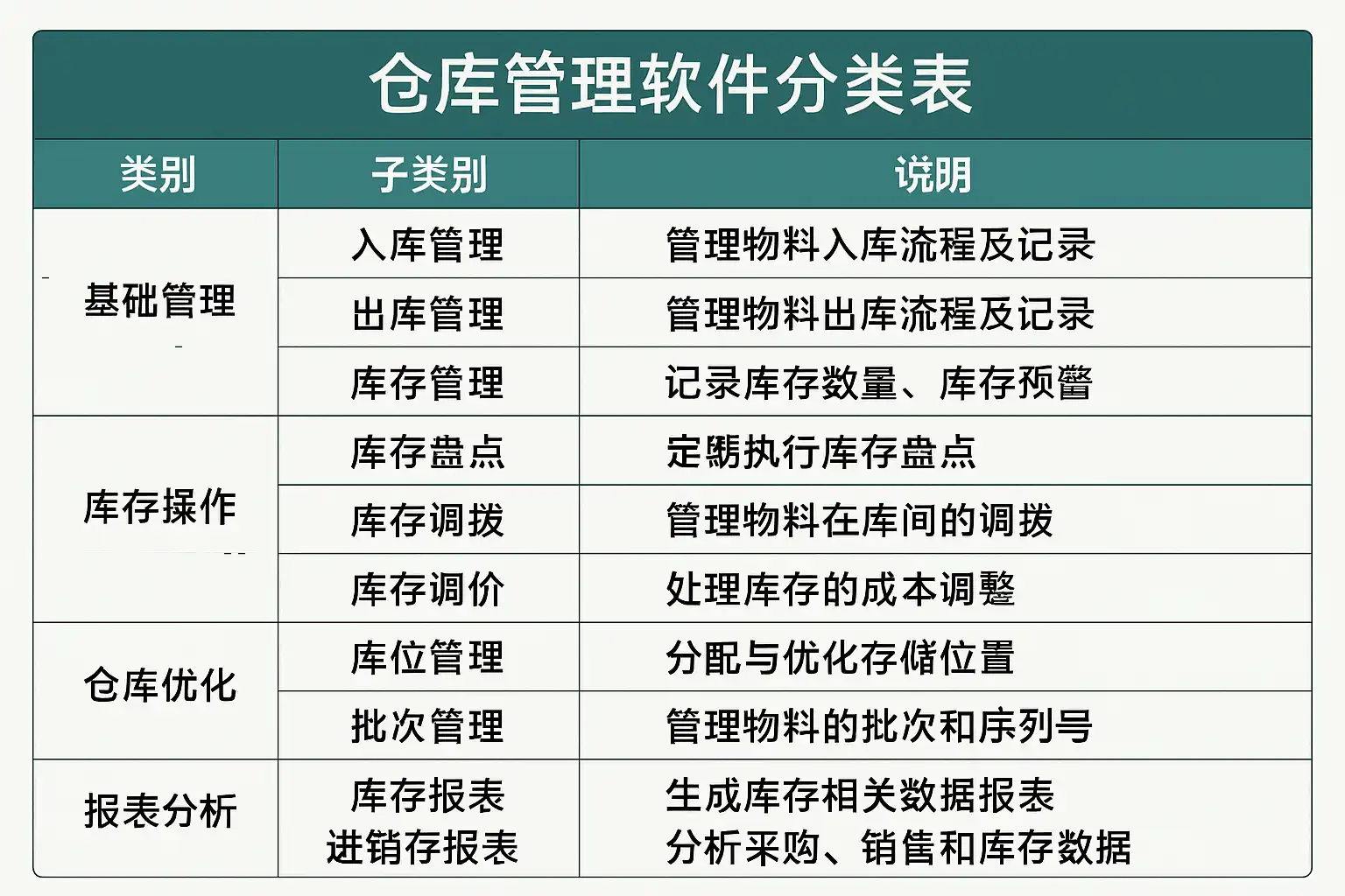 《仓库管理软件分类表详解,哪种软件更适合您?》