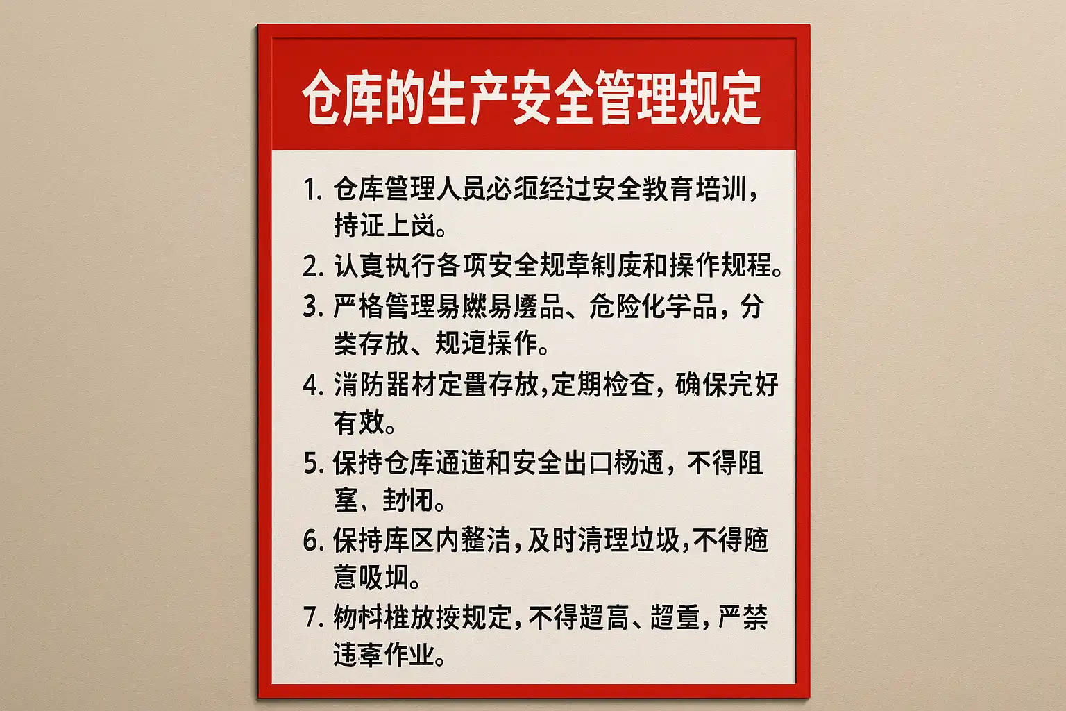 健全的安全管理制度,是仓库生产安全的基础。企业需结合实际,制定切实可行的安全生产规章,明确各环节安全要求和责任分工。