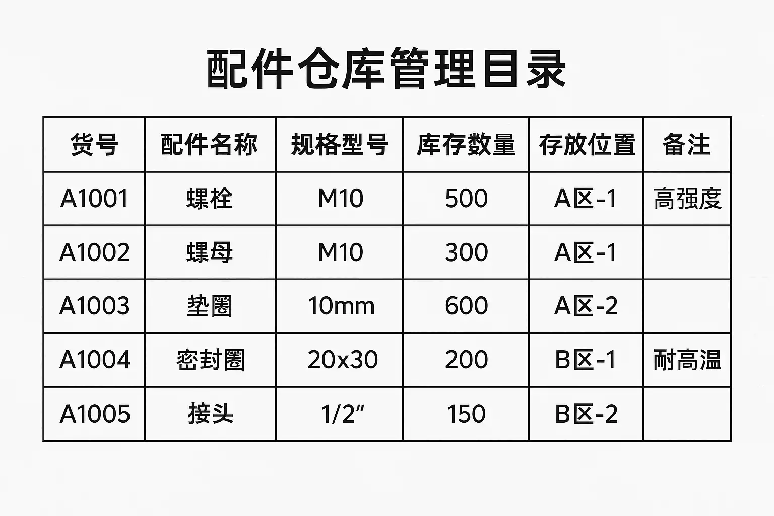 公司配件仓库管理目录表详解,如何高效整理配件库存?