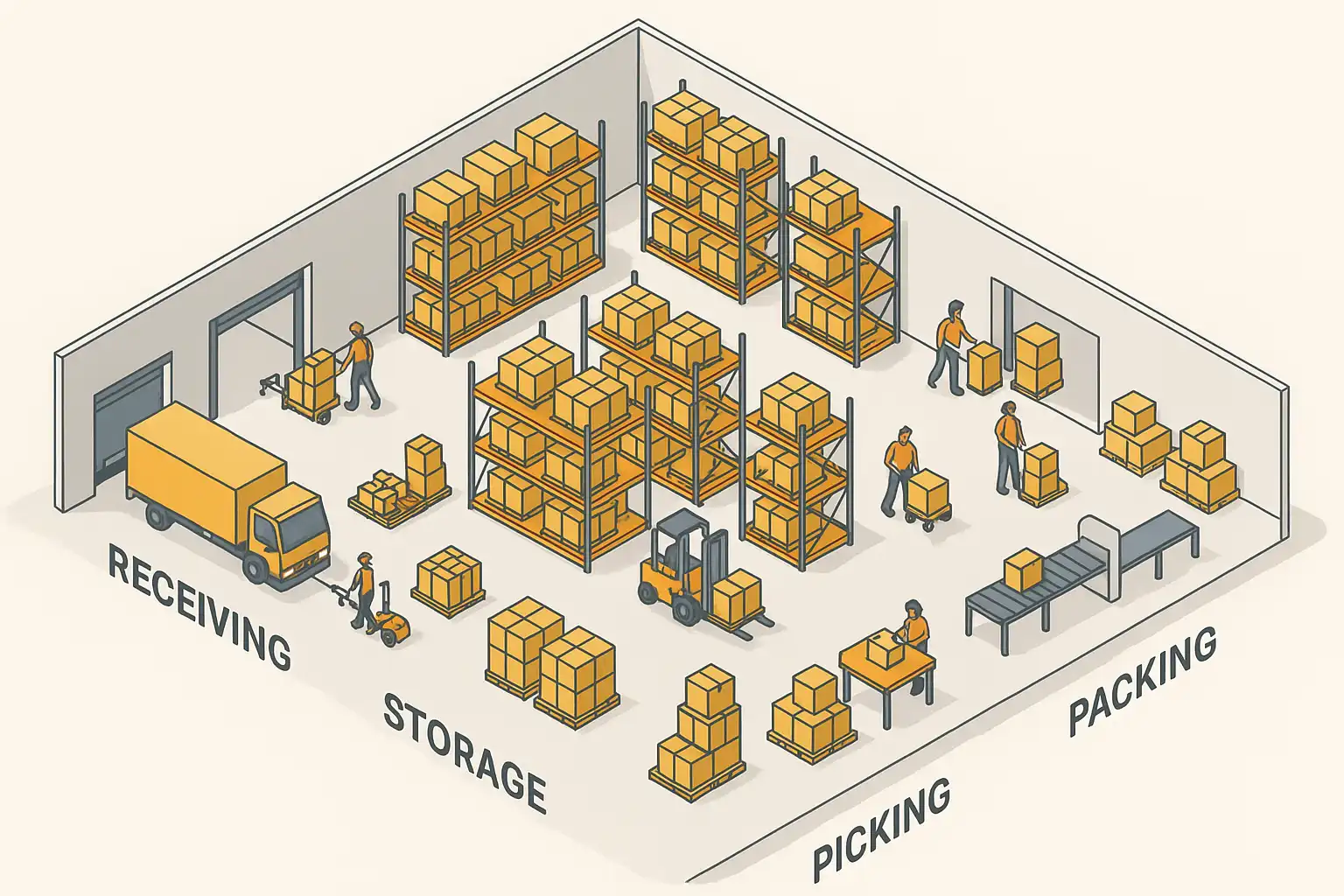 - 设计合理的收货、存储、拣选、出库路线,避免物流交叉干扰。