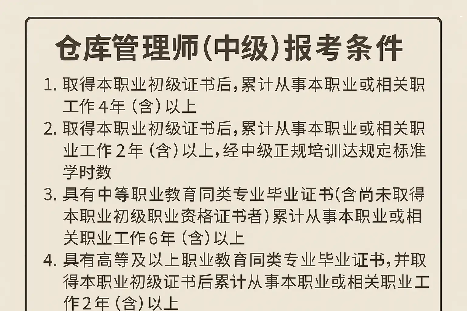 《仓库管理师中级报考条件详解,符合条件了吗?》