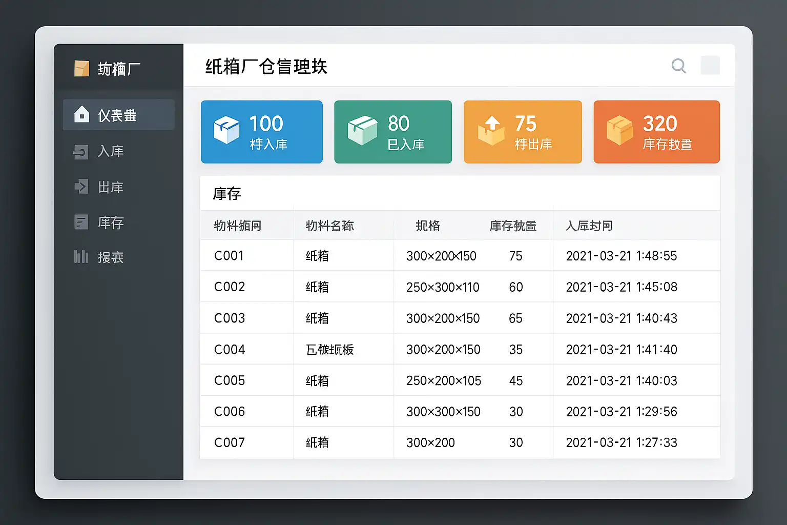 纸箱厂通常涉及大量原材料(纸板、胶水等)、半成品和成品的存储与流转。传统管理方式易出现以下问题: