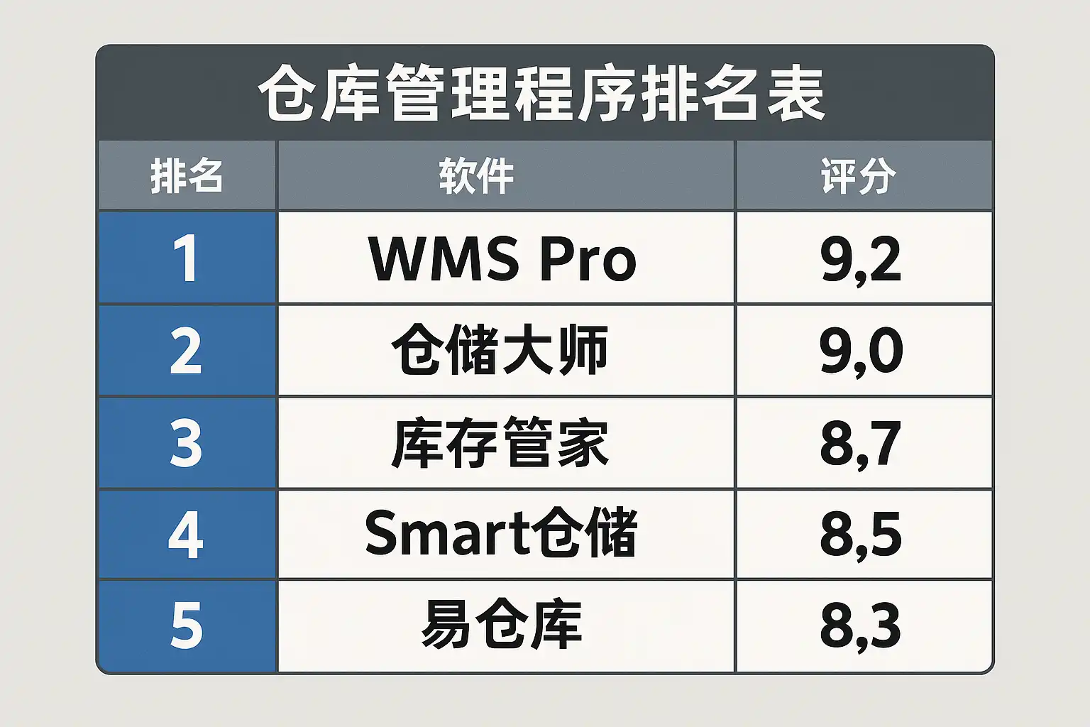 一、仓库管理程序排名表总览