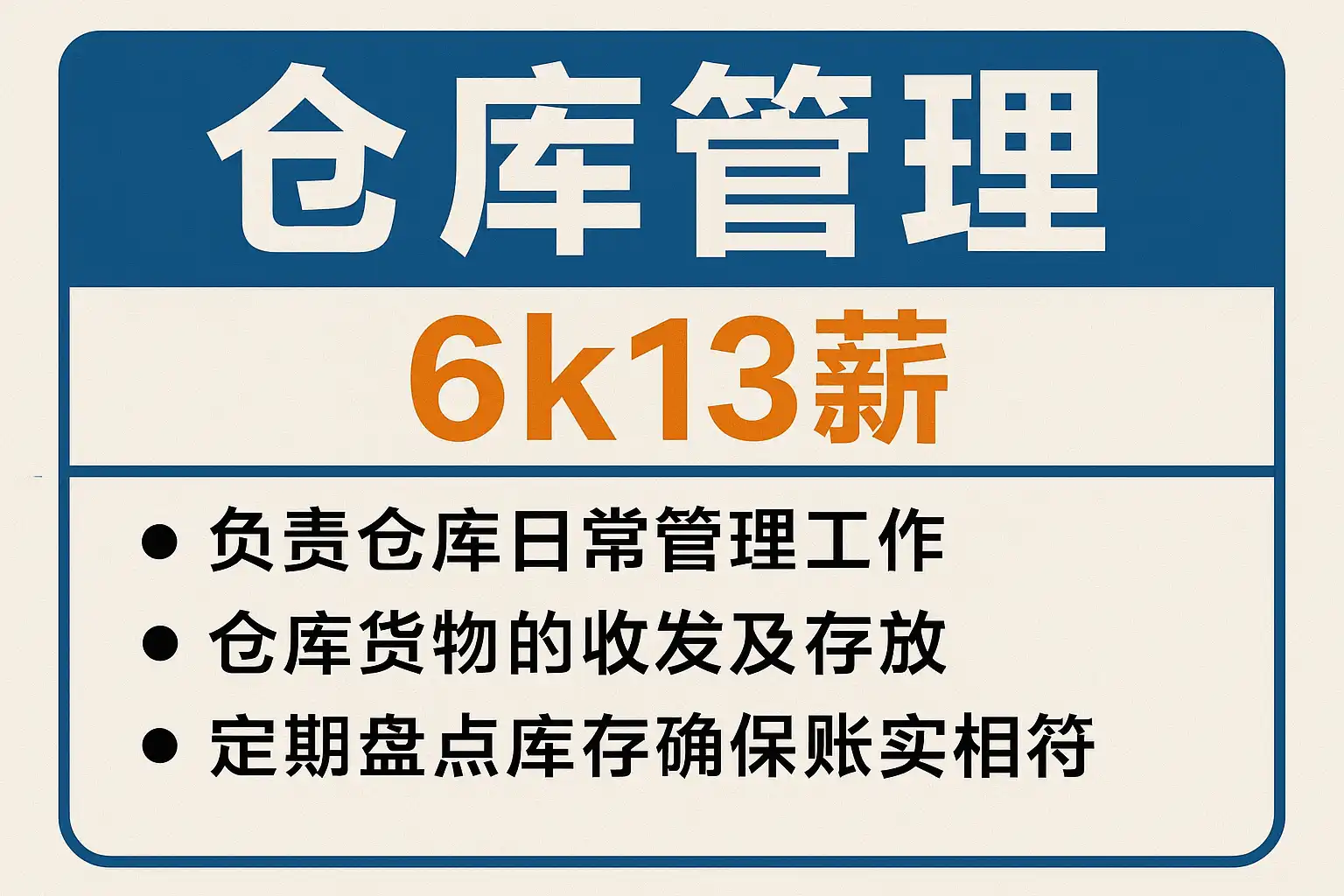| 仓库管理员 | 6k-8k | 日常入库、出库、盘点等 | 1-2年 |