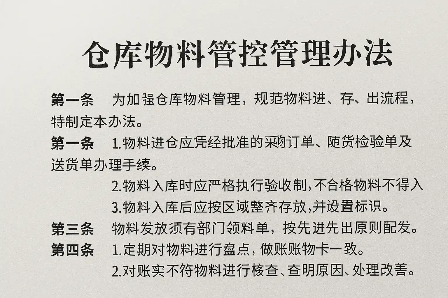 仓库物料管控管理办法中,如何通过标准化流程提升物料管理效率?