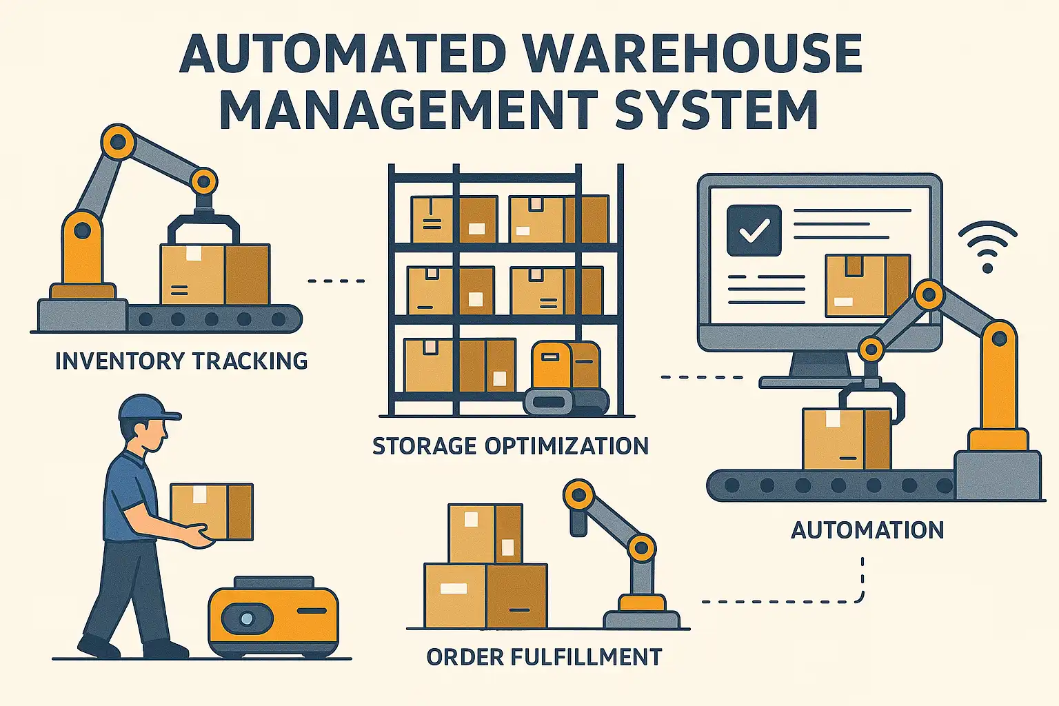 自动化仓库管理系统(WMS)通过集成条码扫描、RFID技术和智能软件,实现库存实时追踪和管理。其核心作用包括: