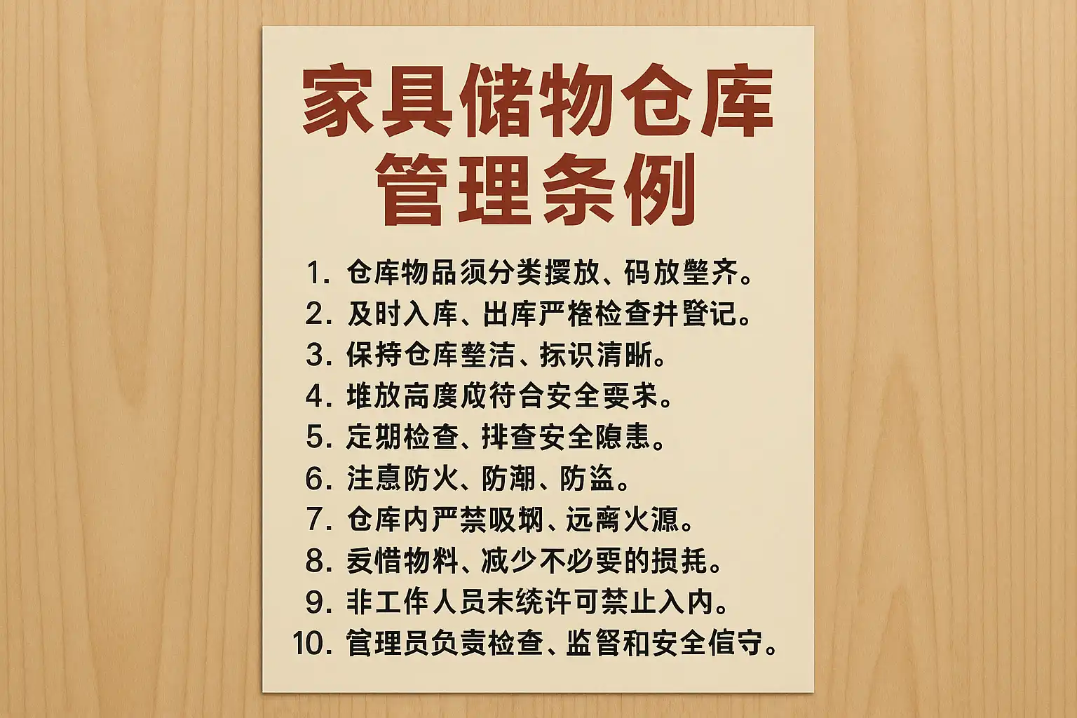 家具储物仓库管理条例主要涵盖以下核心内容: