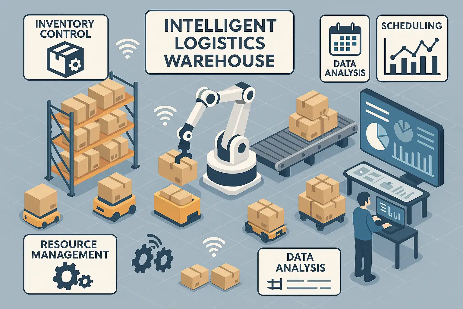 智能物流仓库管理方法主要包括自动化拣选系统、智能货架管理、物联网(IoT)设备监控和数据驱动的库存优化。具体来说: