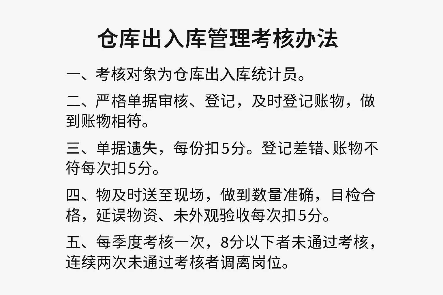 仓库出入管理考核办法有哪些核心指标?