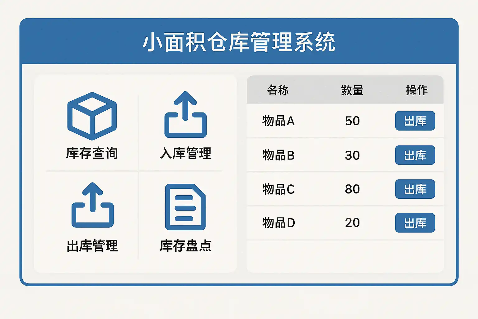 需求分析 小面积仓库最核心的管理需求包括:库存实时查询、入库出库记录、库存盘点、报表统计、权限管理等。传统纸质或Excel表格管理难以满足实时性和准确性,软件化管理成为必然选择。
