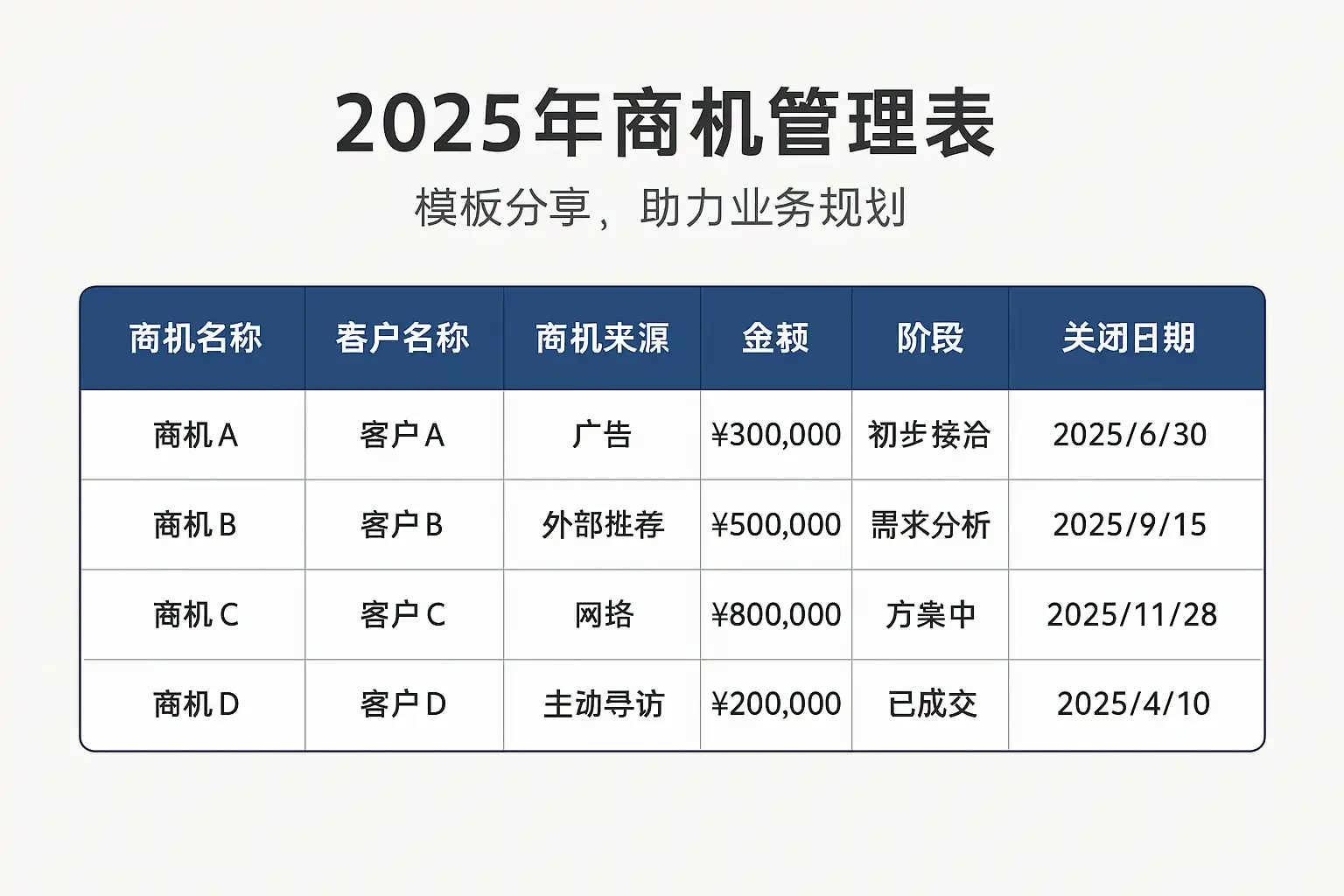 如何利用2025最新版商机管理表模板提升业务规划效果?