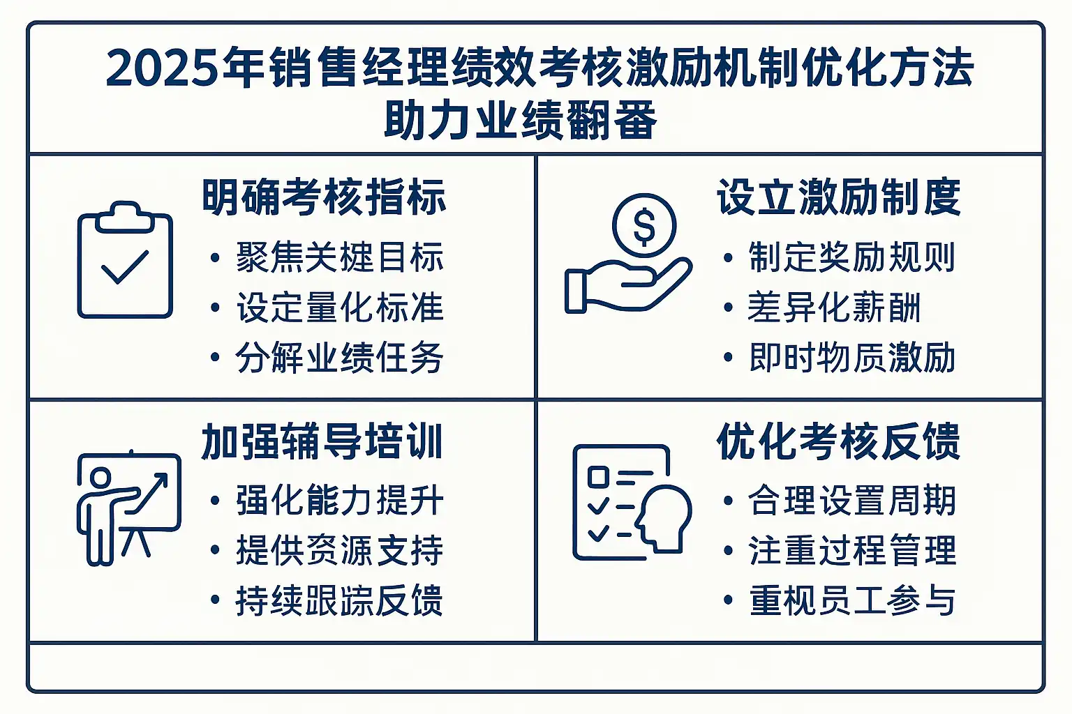 实现业绩翻番的关键在于精准的绩效考核和有效的激励机制,具体策略包括: