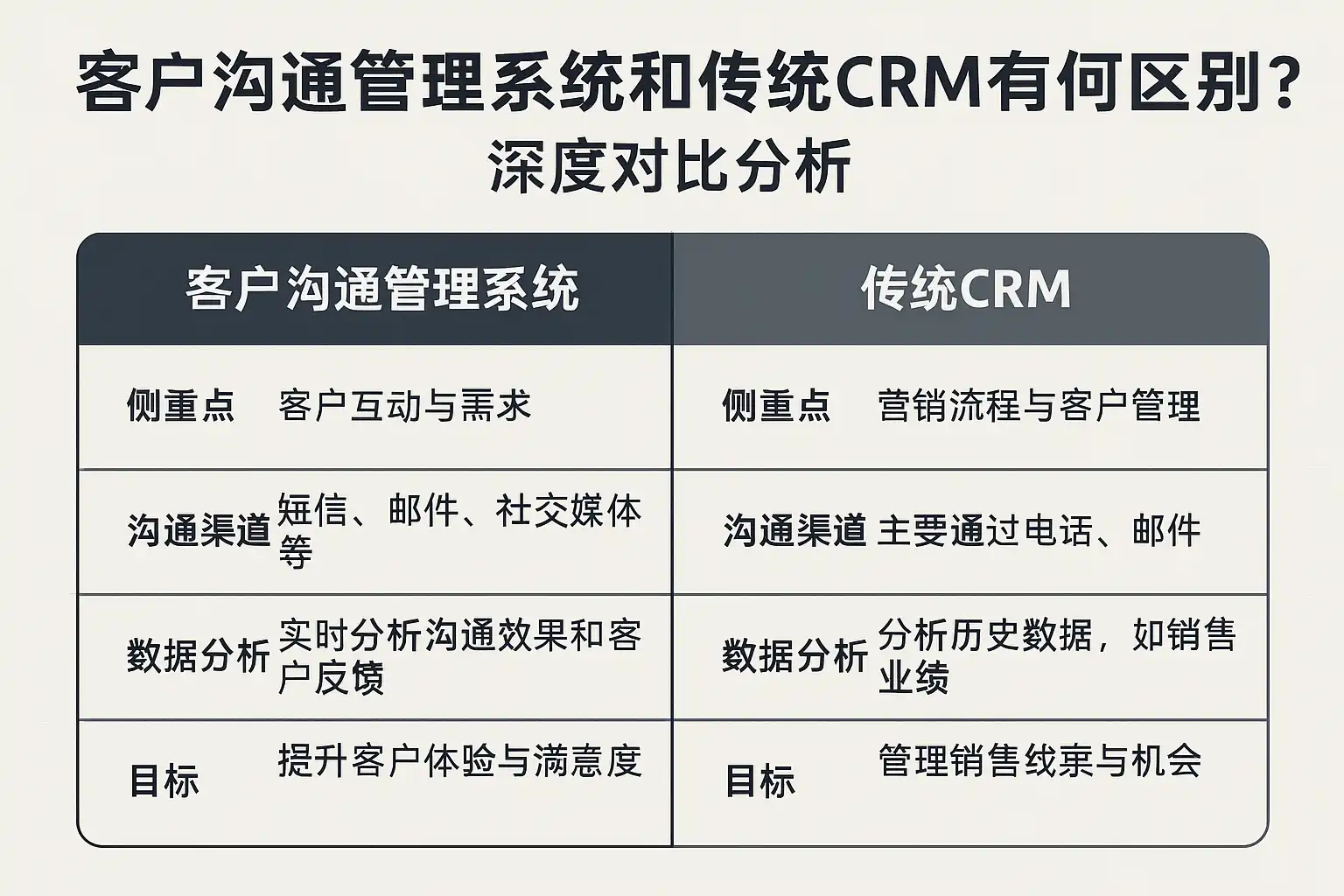 客户沟通管理系统(Customer Communication Management System)和传统CRM系统在核心功能和应用重点上存在本质区别: