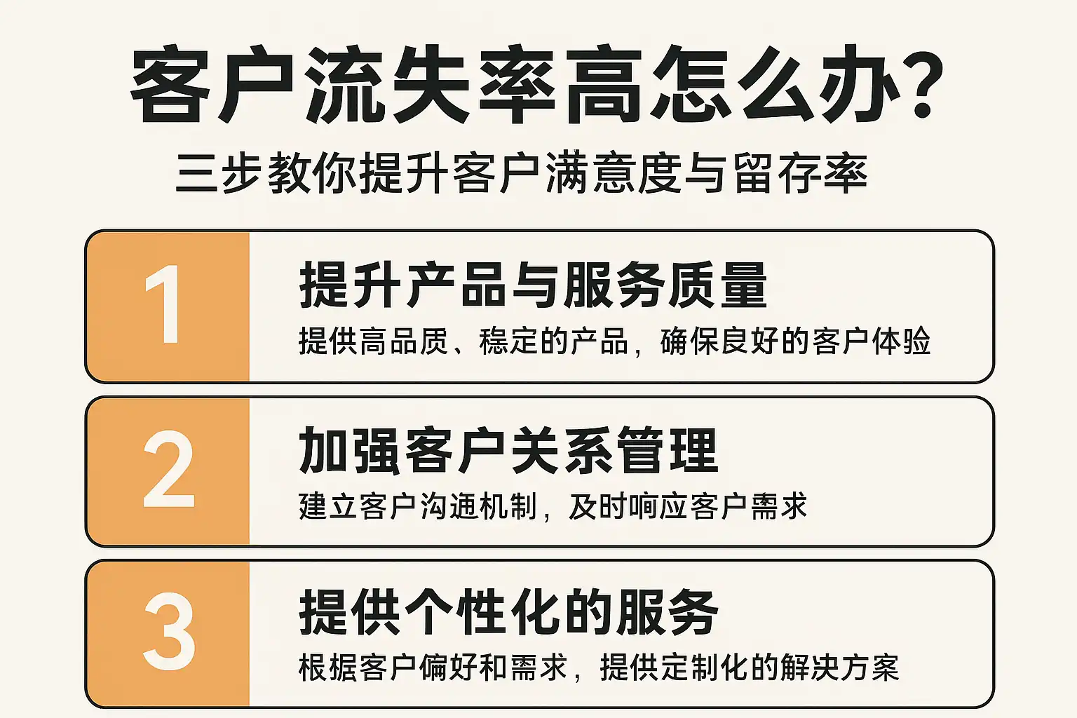 提升客户满意度并有效降低客户流失率,建议采取三步法: