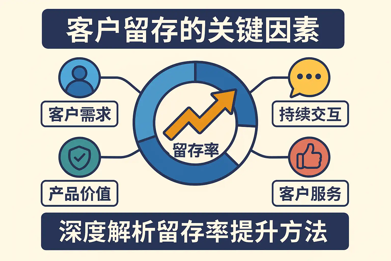 客户留存率是衡量企业可持续增长和稳定收入的重要指标。提升客户留存不仅能降低获客成本,还能带来更高的复购率和口碑传播。影响客户留存的核心要素主要有以下几点:
