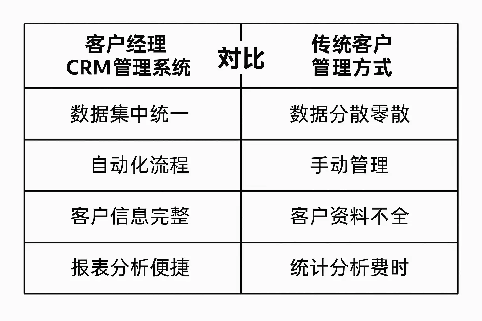| 手动跟踪沟通 | 信息易遗漏,难以形成客户画像 |