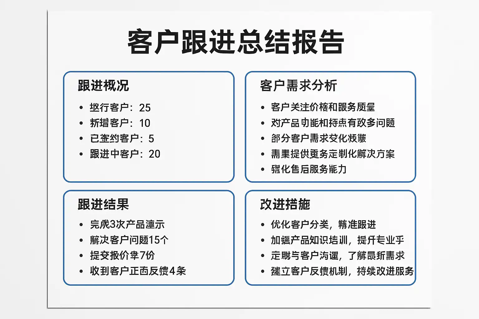 客户跟进总结报告范例有哪些关键内容?