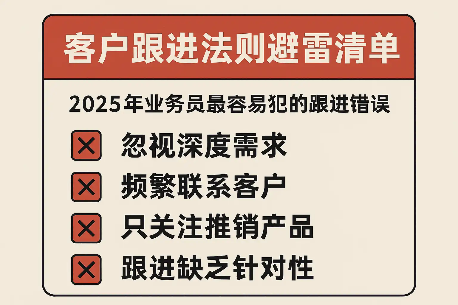 客户跟进法则避雷清单,2025年业务员跟进错误有哪些?