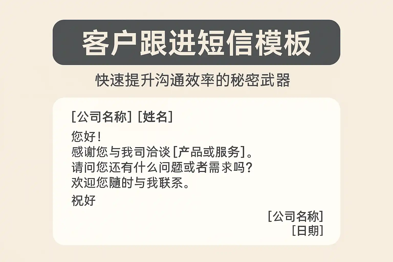 标准化客户跟进短信模板,是提升沟通效率的关键。通过预设统一的模板,企业可以确保每次客户触达都规范有序,避免遗漏关键信息或表述失误,减少沟通成本。