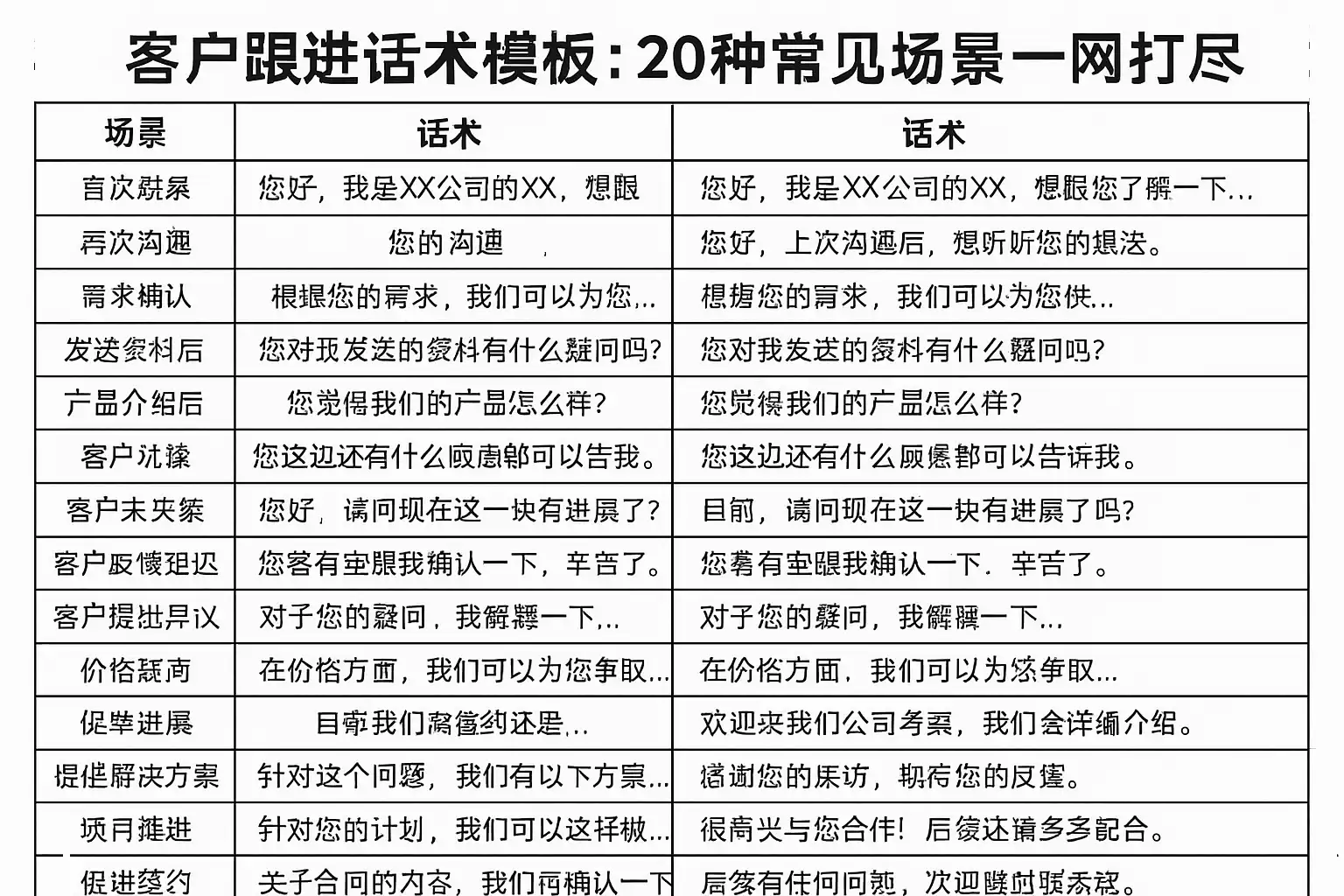 二、20种客户跟进场景及高效话术模板大全