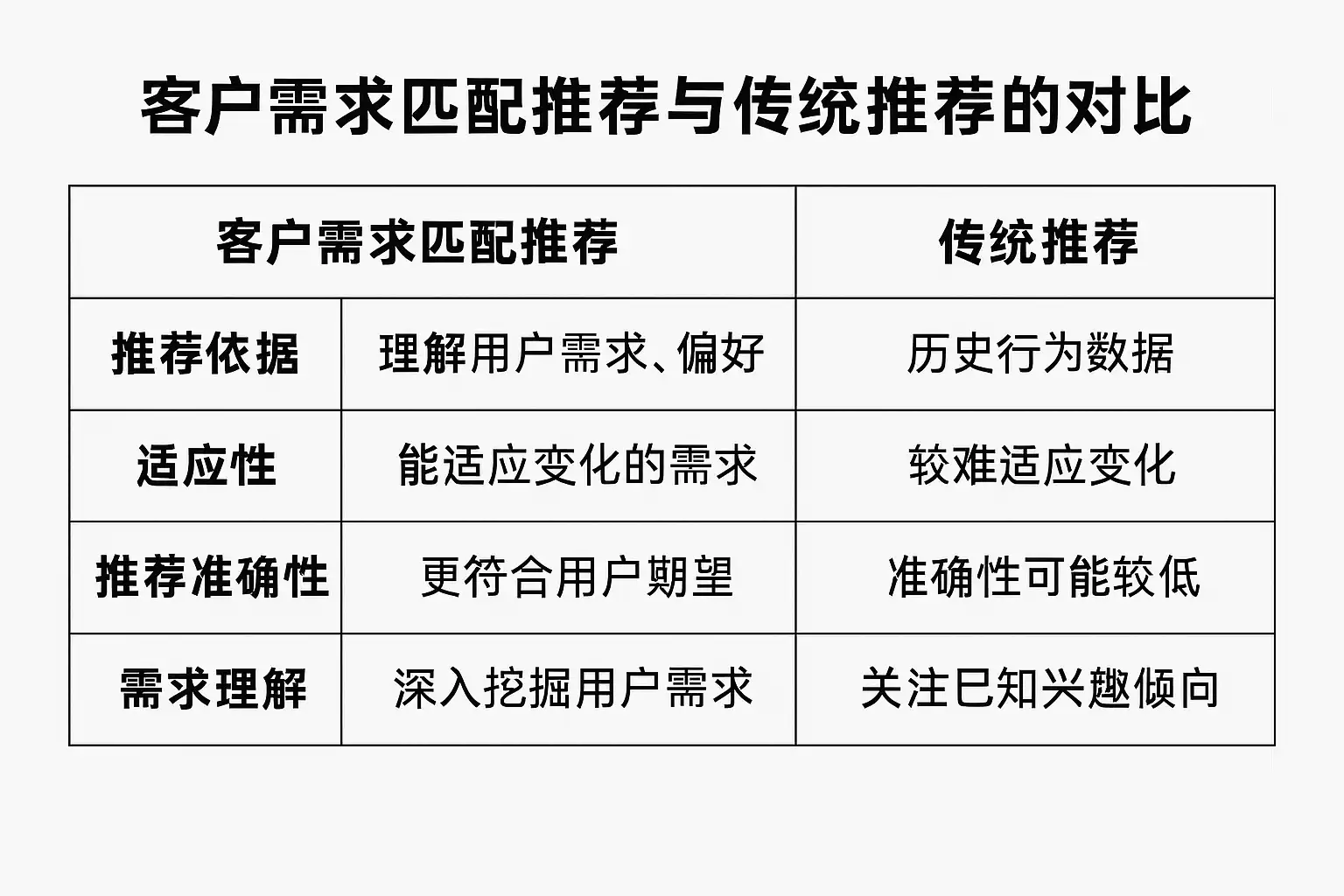 七、传统推荐方法与客户需求匹配推荐方法的显著区别总结