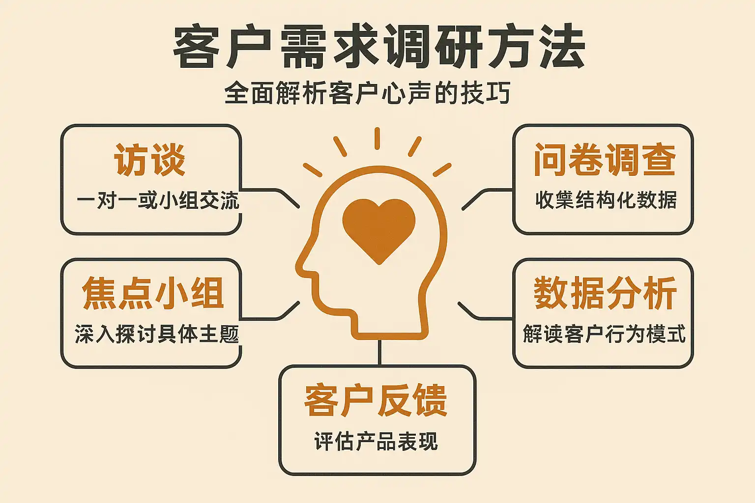 通过结合多种方法,可以提升客户需求调研的全面性和精准度。