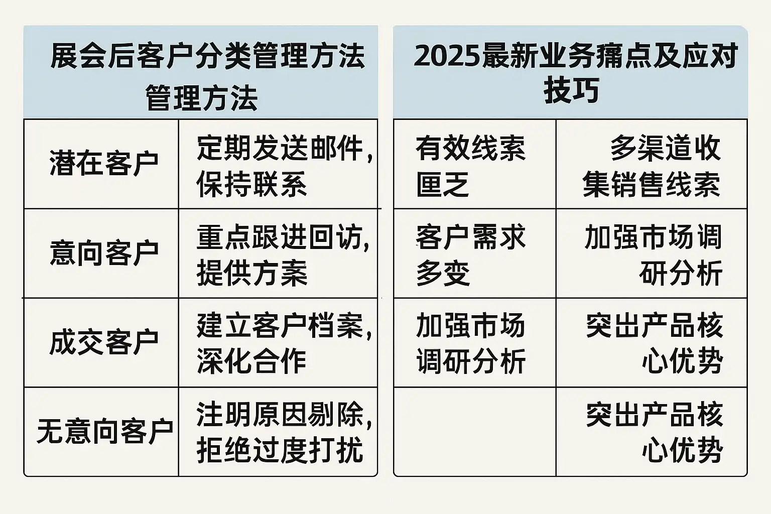 展会后精准应对业务痛点的客户分类管理方法包括:
