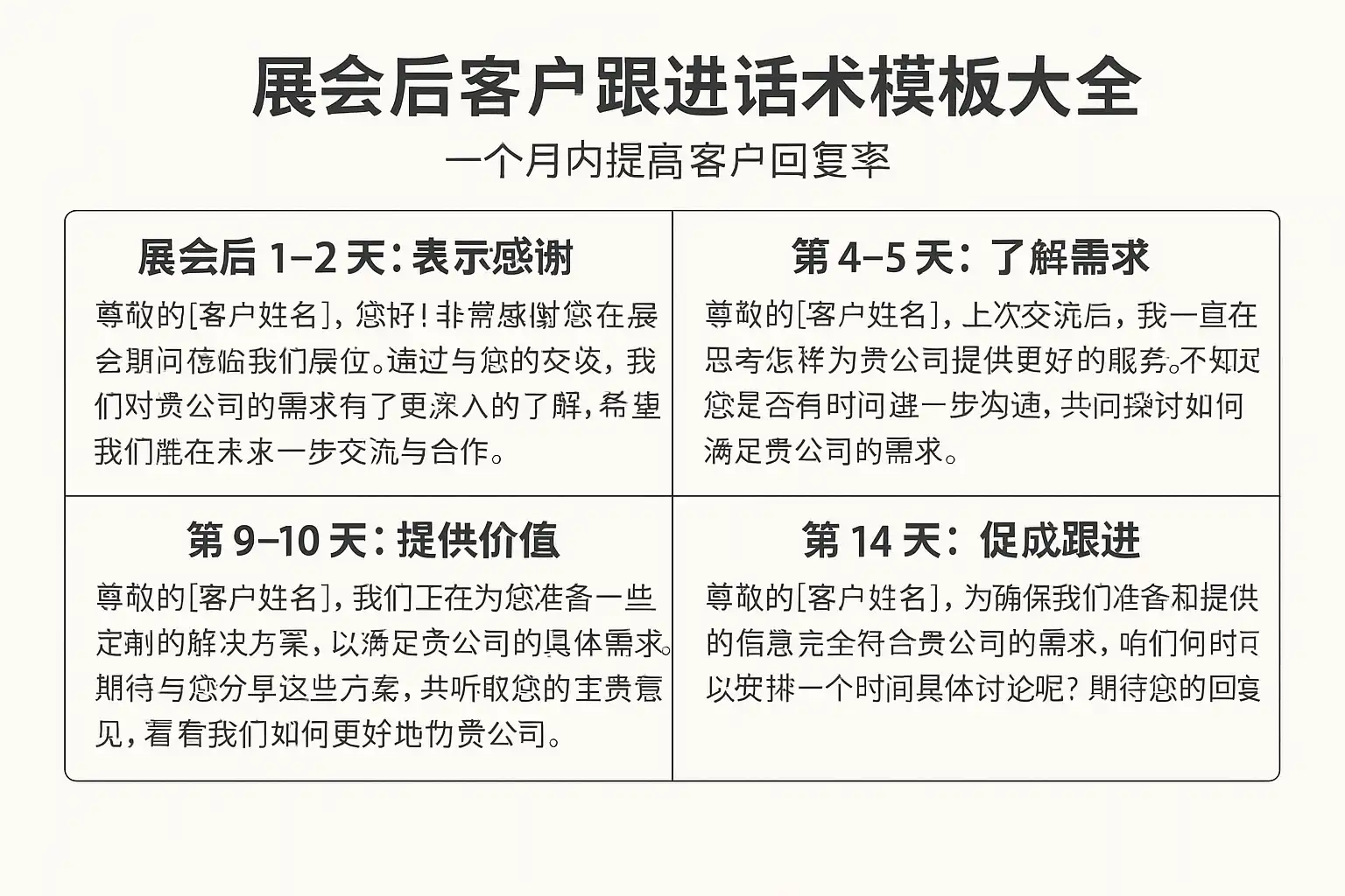 《客户跟进话术模板大全,展会后如何一个月内提升回复率?》