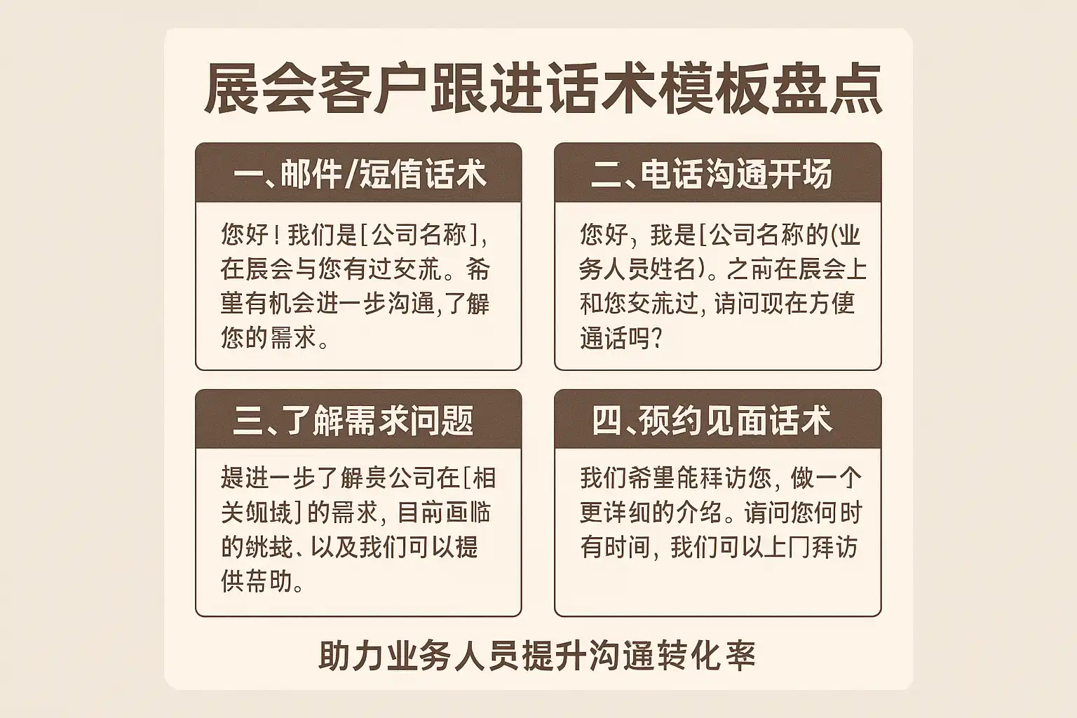《展会客户跟进话术模板盘点,如何提升业务沟通转化率?助力业务人员提升沟通转化率,展会客户跟进话术有哪些技巧?》