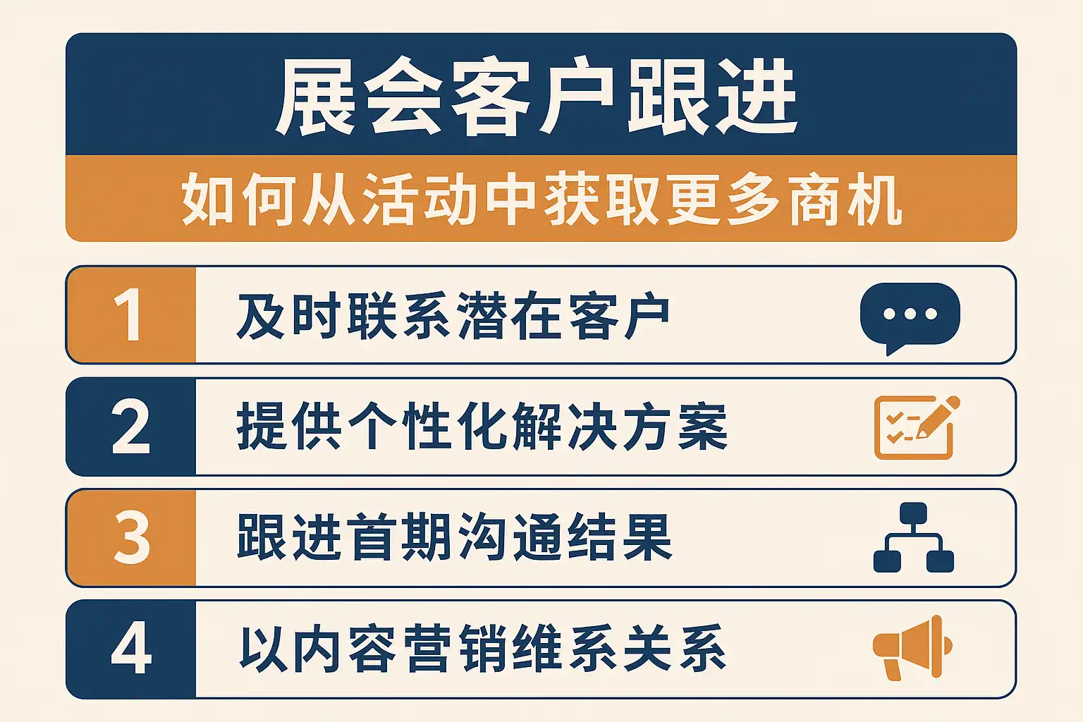 展会期间及展后,客户沟通的质量直接影响商机转化率。建议的做法包括:
