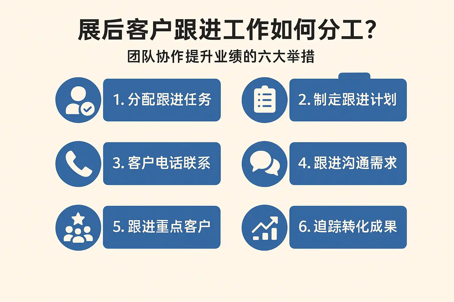 《展后客户跟进工作如何分工?团队协作提升业绩的六大举措有哪些?》