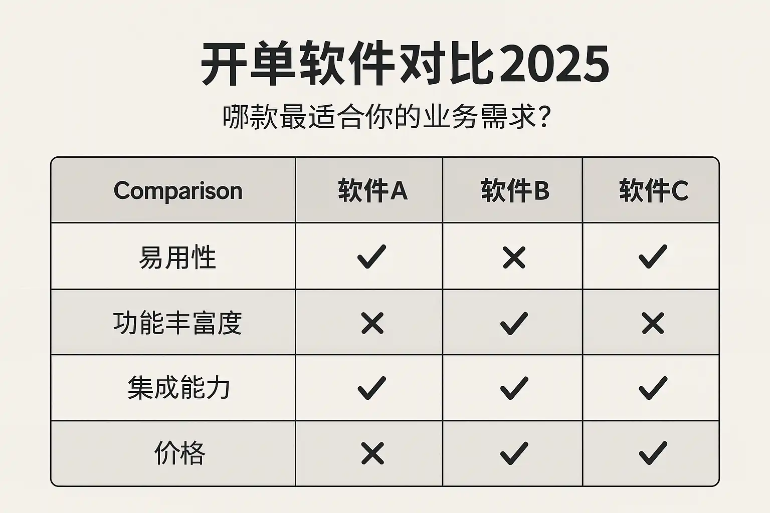 选择开单软件时,建议企业结合自身业务特性、发展阶段、人员规模及IT能力综合考量: