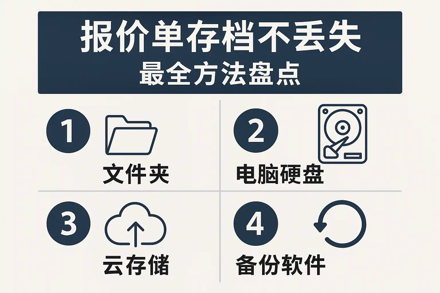 报价单存档的首要原则是“多地、多方式备份”,这样即使部分系统或硬件损坏,也能最大限度地恢复数据。