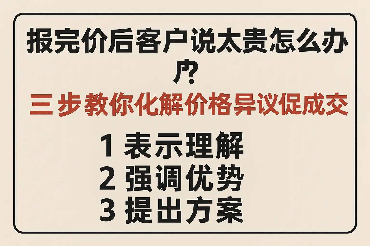化解价格异议的关键在于理解客户的真实顾虑并针对性回应。三步促成成交的方法包括: