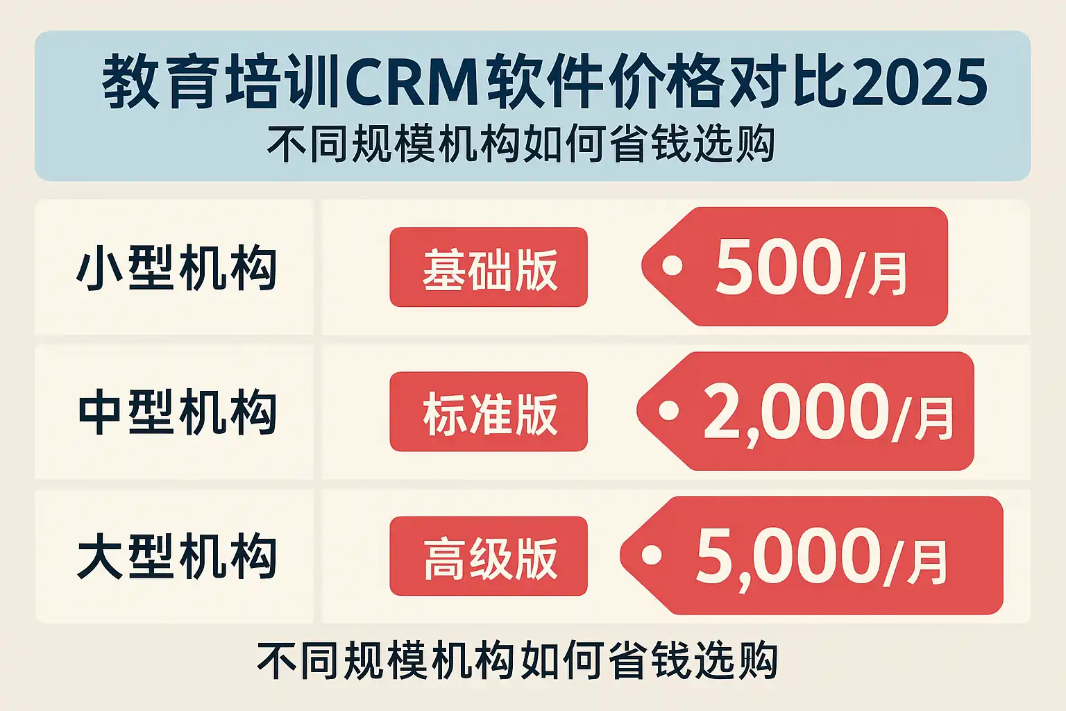 不同规模的教育机构在选购CRM时,需求侧重点不同,省钱策略也需有针对性。以下分为小型、中型、大型机构的典型选购建议: