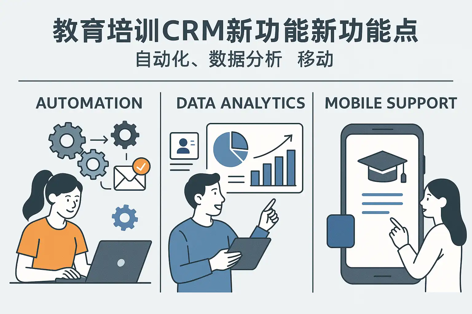 我最近在考虑给教育机构引入CRM系统,但对教育培训CRM软件的最新功能不是很了解,特别想知道它们在自动化和移动端支持方面有哪些具体的提升,能否帮我详细介绍一下?