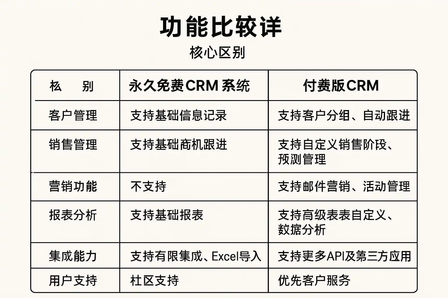《永久免费CRM系统核心区别解析,付费版功能更强大吗?》